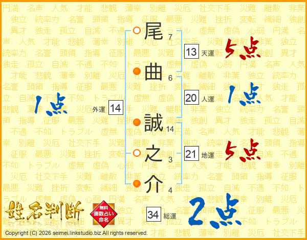 尾(7画)曲(6画) 誠(14画)之(3画)介(4画)