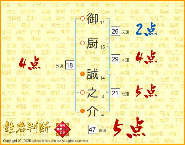 御厨誠之介さんの総運は47画の5点!