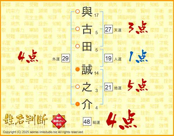 與(17画)古(5画)田(5画) 誠(14画)之(3画)介(4画)