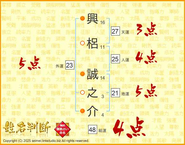 興(16画)梠(11画) 誠(14画)之(3画)介(4画)