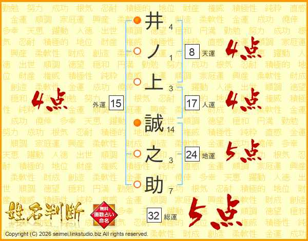 井(4画)ノ(1画)上(3画) 誠(14画)之(3画)助(7画)