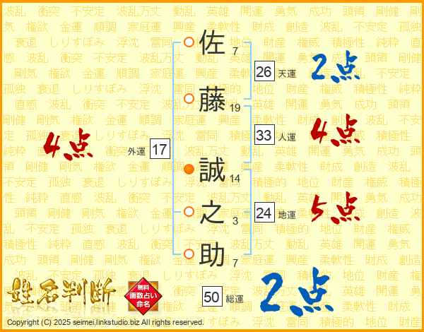 佐藤誠之助さんの人運は33画の4点!