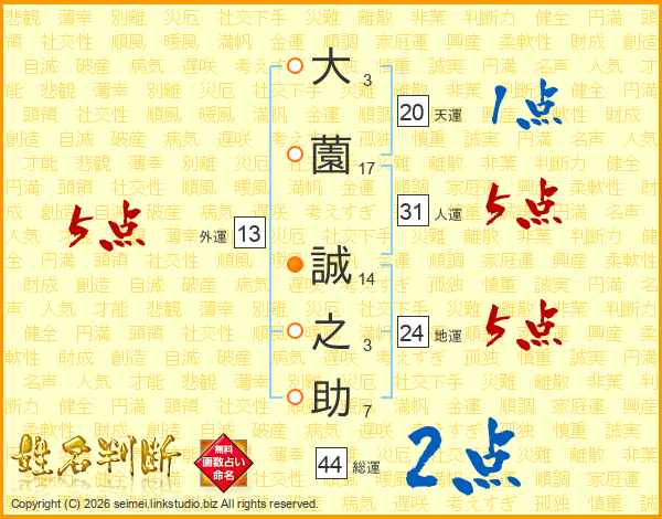 大(3画)薗(17画) 誠(14画)之(3画)助(7画)