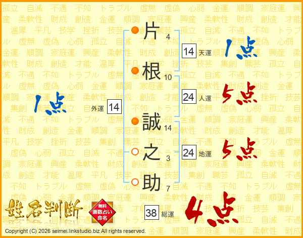 片根誠之助さんの総運は38画の4点!