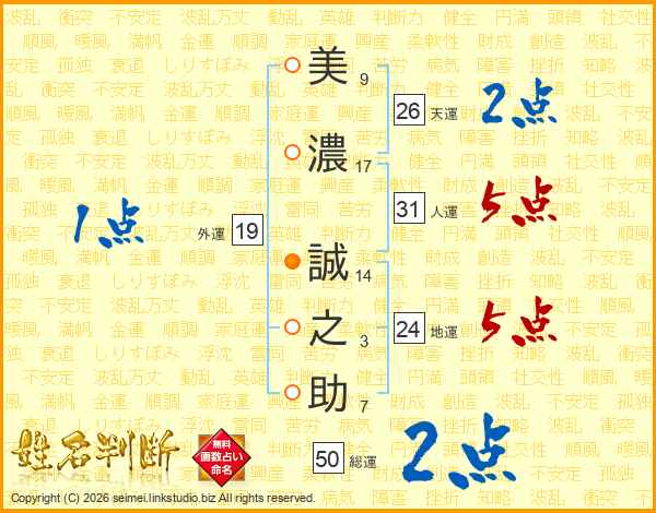 美濃誠之助さんの天運は26画の2点!