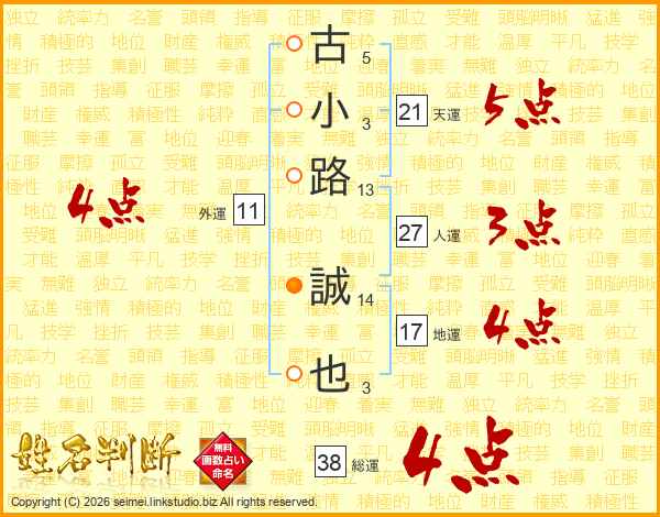 古(5画)小(3画)路(13画) 誠(14画)也(3画)