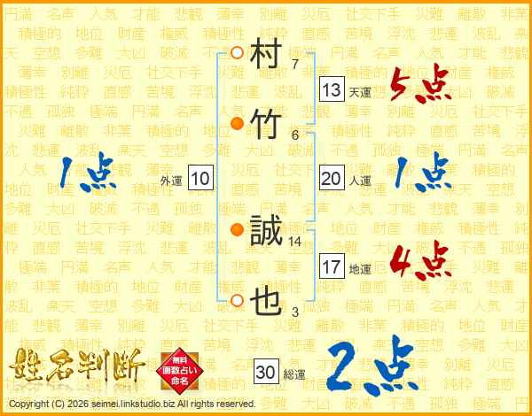 村竹誠也さんの総運は30画の2点!