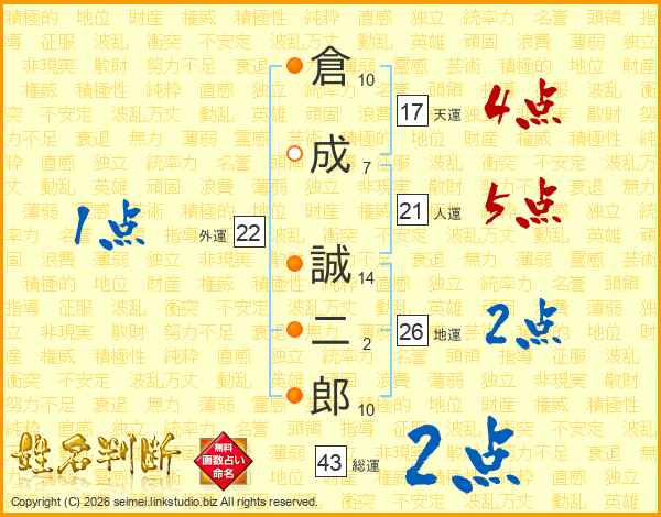 倉成誠二郎さんの地運は26画の2点!