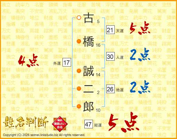 古橋誠二郎さんの総運は47画の5点!