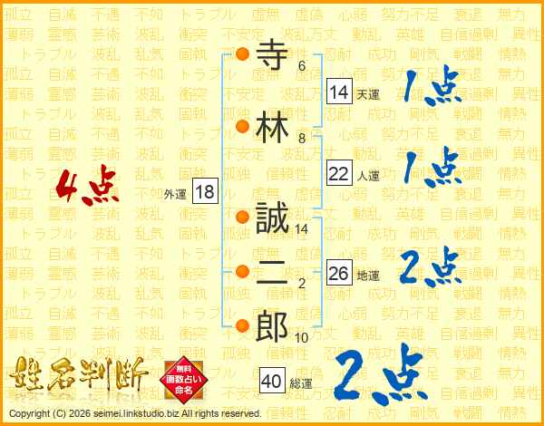 寺(6画)林(8画) 誠(14画)二(2画)郎(10画)