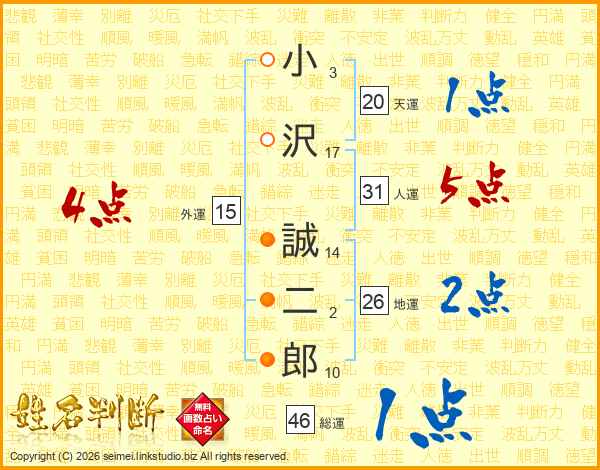 小沢誠二郎さんの人運は31画の5点!