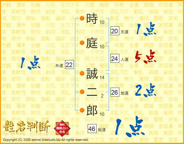 時庭誠二郎さんの総運は46画の1点!