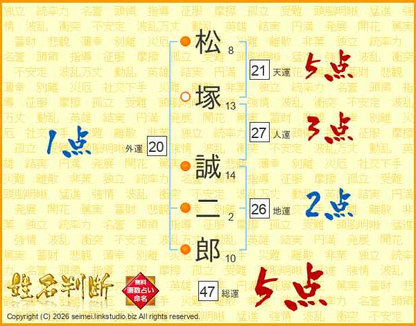 松塚誠二郎さんの総運は47画の5点!