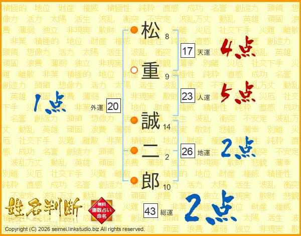 松重誠二郎さんの総運は43画の2点!