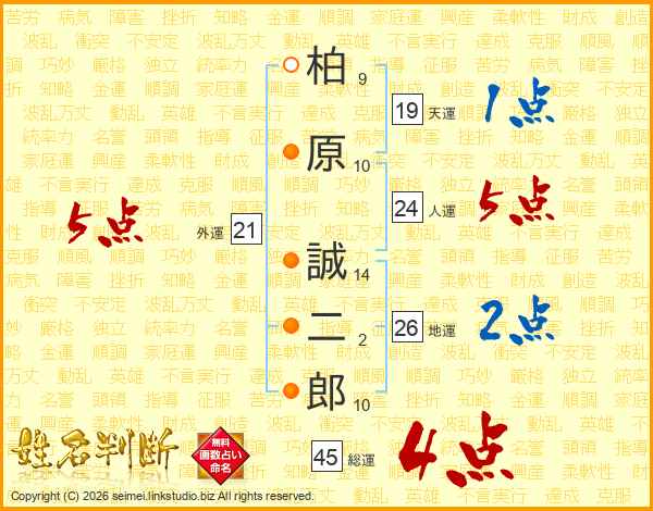 柏原誠二郎さんの総運は45画の4点!