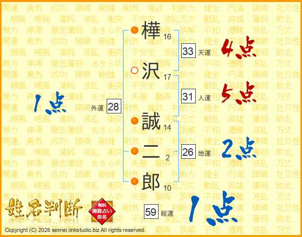 樺沢誠二郎さんの総運は59画の1点!