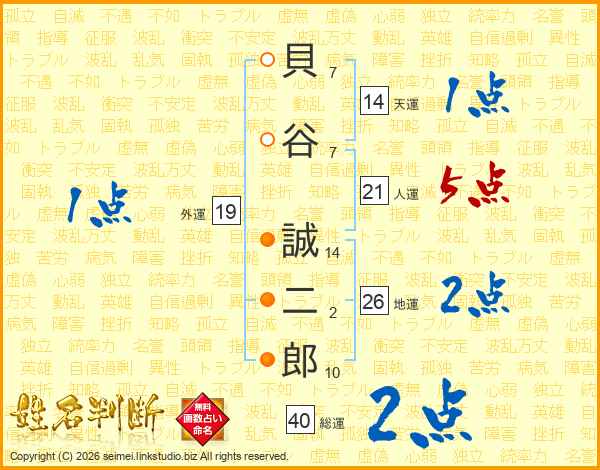 貝谷誠二郎さんの総運は40画の2点!