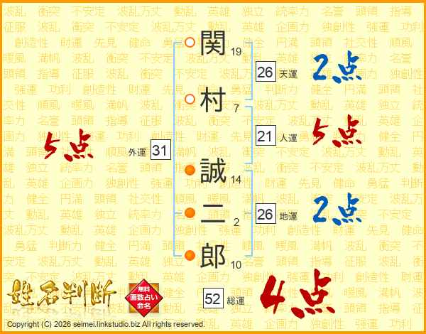 関村誠二郎さんの総運は52画の4点!