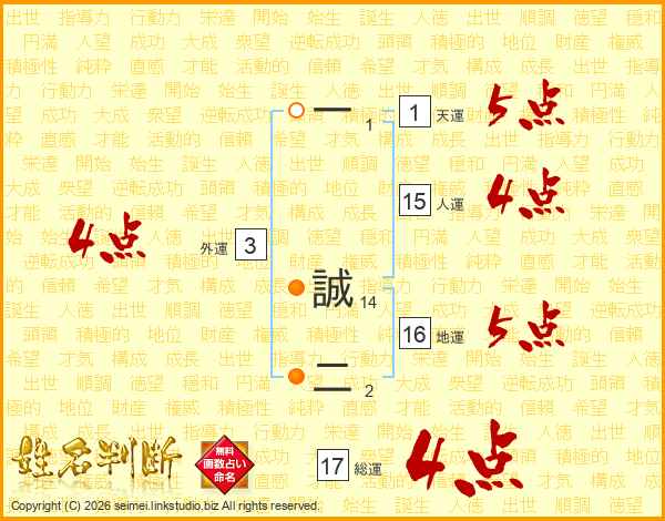 一誠二さんの総運は17画の4点!