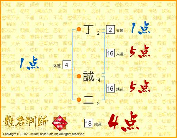 丁誠二さんの総運は18画の4点!