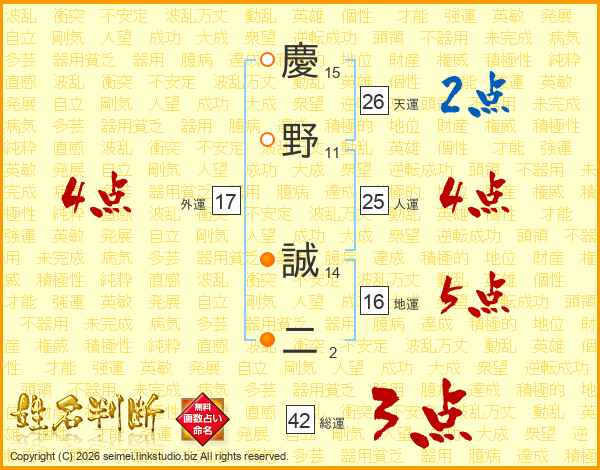 慶野誠二さんの天運は26画の2点!