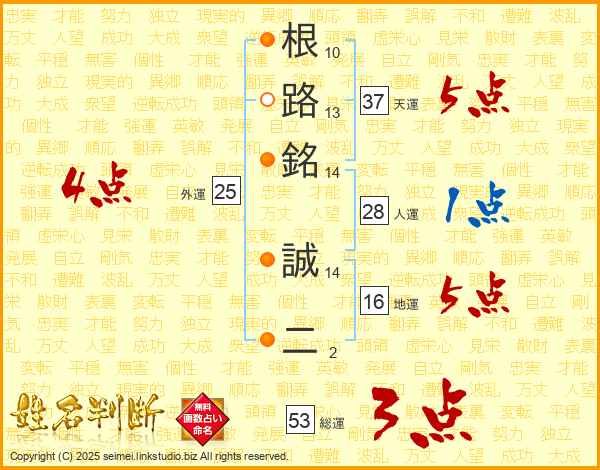 根路銘誠二さんの天運は37画の5点!