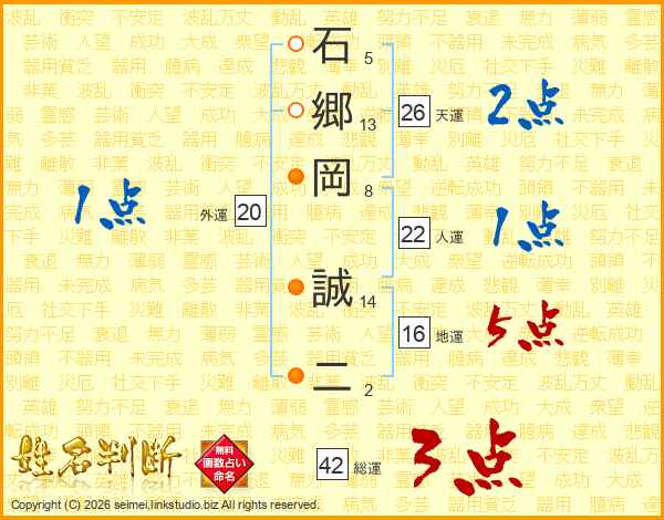 石郷岡誠二さんの天運は26画の2点!