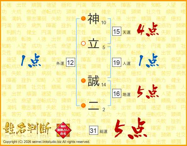 神立誠二さんの総運は31画の5点!