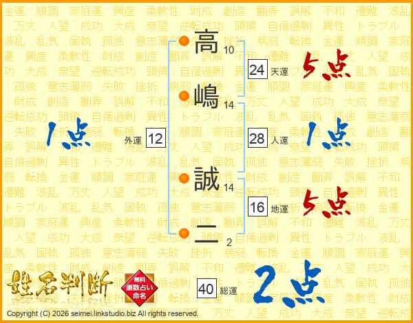 高(10画)嶋(14画) 誠(14画)二(2画)