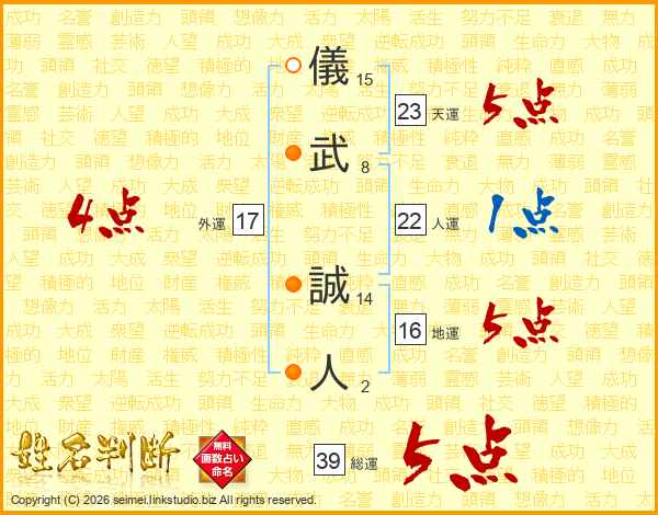 儀武誠人さんの総運は39画の5点!