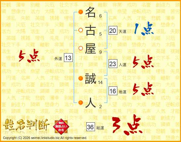 名古屋誠人さんの人運は23画の5点!
