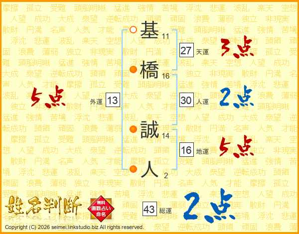 基(11画)橋(16画) 誠(14画)人(2画)