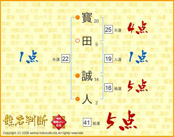 寳田誠人さんの総運は41画の5点!