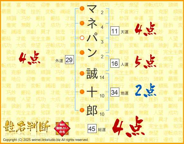 マ(2画)ネ(4画)パ(3画)ン(2画) 誠(14画)十(10画)郎(10画)