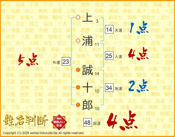 上浦誠十郎さんの人運は25画の4点!