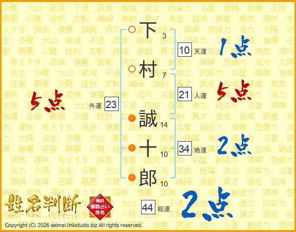 下(3画)村(7画) 誠(14画)十(10画)郎(10画)