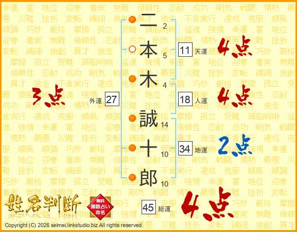 二本木誠十郎さんの総運は45画の4点!