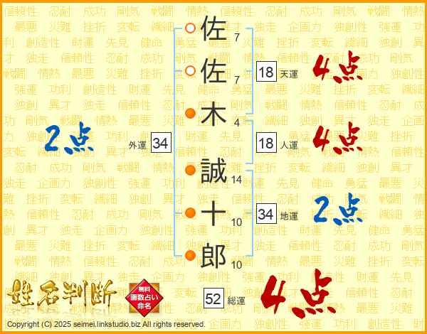 佐(7画)佐(7画)木(4画) 誠(14画)十(10画)郎(10画)