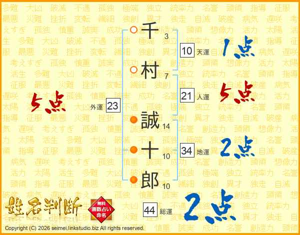 千(3画)村(7画) 誠(14画)十(10画)郎(10画)