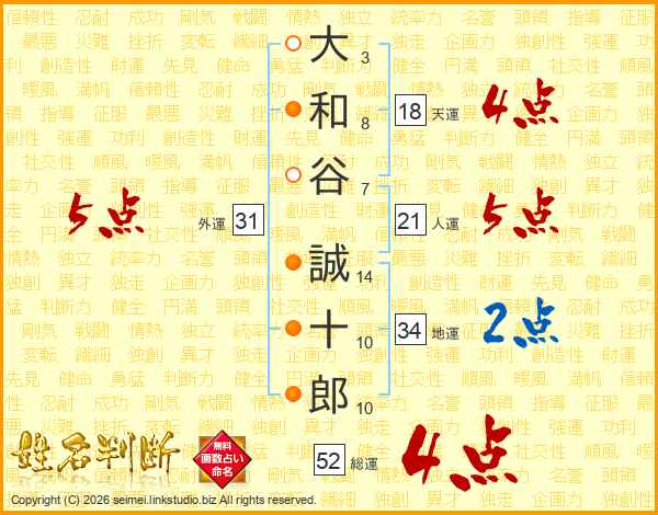 大(3画)和(8画)谷(7画) 誠(14画)十(10画)郎(10画)