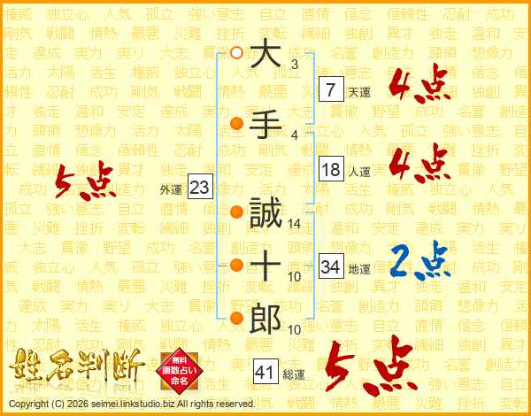 大(3画)手(4画) 誠(14画)十(10画)郎(10画)