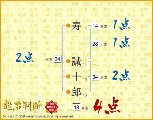 寿(14画) 誠(14画)十(10画)郎(10画)