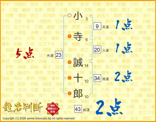 小(3画)寺(6画) 誠(14画)十(10画)郎(10画)