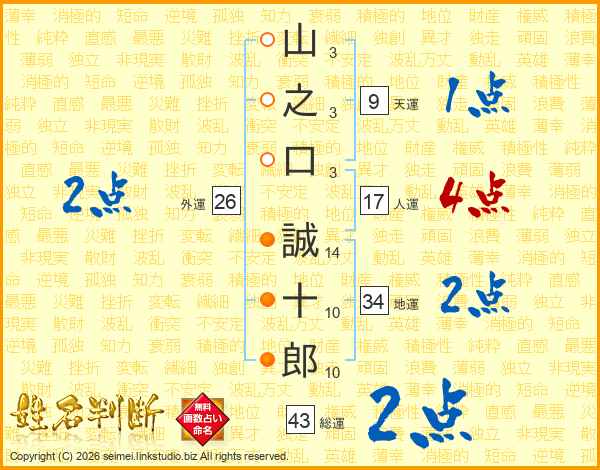 山之口誠十郎さんの総運は43画の2点!