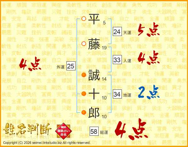 平藤誠十郎さんの総運は58画の4点!