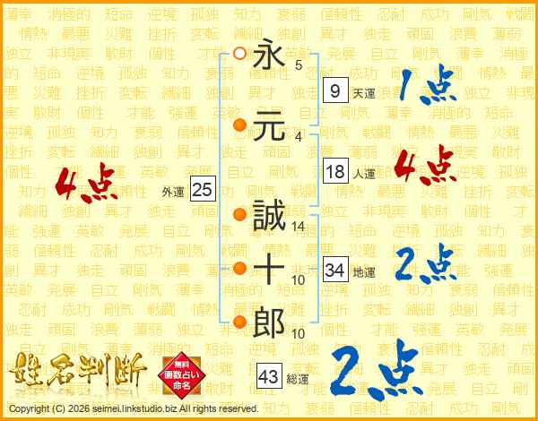 永(5画)元(4画) 誠(14画)十(10画)郎(10画)