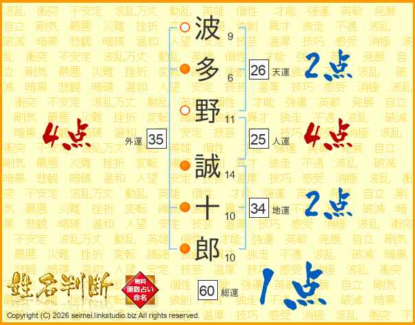 波(9画)多(6画)野(11画) 誠(14画)十(10画)郎(10画)