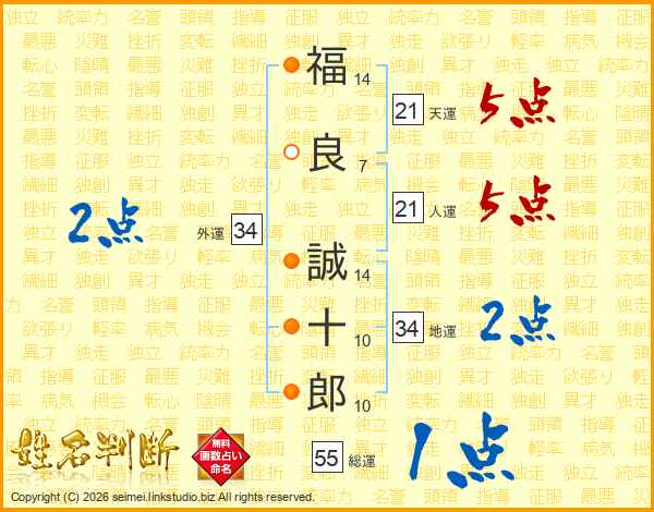 福(14画)良(7画) 誠(14画)十(10画)郎(10画)