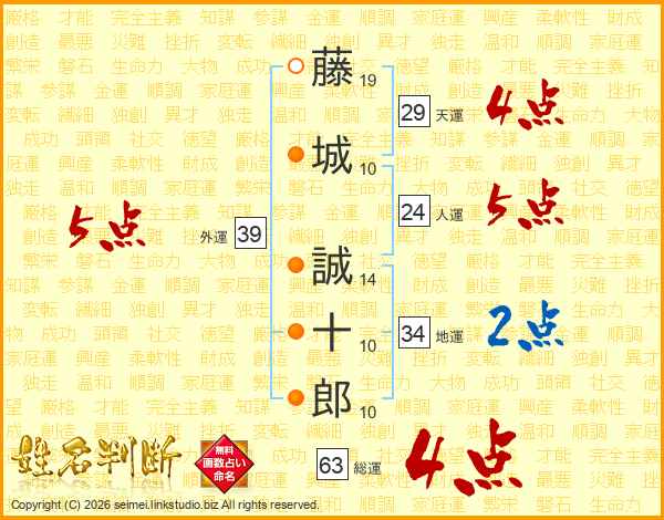 藤城誠十郎さんの総運は63画の4点!