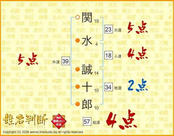 関水誠十郎さんの総運は57画の4点!